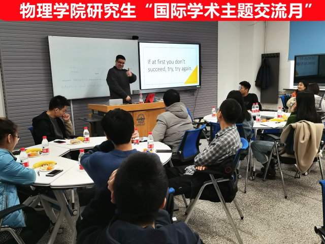 10月30日下午,伟德bv1946官网在正心楼303举行研究生“国际学术主题交流月”第三期--“口语&听力”英文讲座活动。伟德bv1946官网辅导员秦必达老师,外教Daniel Kevin Penistone受邀参加本次活动,本次讲座由兼职辅导员博士生周大围主持,伟德bv1946官网硕士和博士研究生参加。
