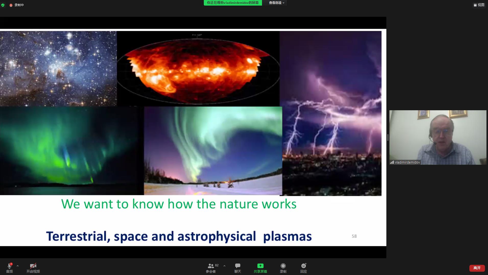 本次暑期学校时间为2021717日至722日,每日分上、下午两个时段为学生安排教学内容,邀请了等离子体领域的中俄专家通过课程和讲座两种方式来介绍等离子体物理基础知识与技术应用、前沿进展、研究热点和未来发展方向。其中三门核心课程:等离子体物理简介(8学时)、等离子体诊断原理(8学时)、等离子体数值模拟基础(8学时),分别由国际知名等离子体放电专家、圣彼得堡国立大学A. Kudryavtsev教授,等离子体诊断技术专家、美国西弗吉尼亚大学V. Demidov教授讲授,等离子体数值模拟专家、中东科技大学I. Rafatov教授。同时本次暑期学校共安排了8次等离子体物理前沿进展讲座(共16学时),分别由国内外等离子体物理领域知名研究专家与学者进行讲授,包括国内等离子体领域权威、我校大学科装置首席科学家王晓钢教授,清华大学工程物理系李和平研究员,中国电子科技集团国家级重点实验室创新团队学术带头人徐彬研究员,国际著名低温等离子体物理专家、俄罗斯自然科学院院士、莫斯科国立大学V. L. Bychkov教授哈尔滨工业大学国家级青年人才聂秋月教授,国家引进人才计划青年项目获得者朱悉铭教授等。各位专家在等离子体物理授课方面经验丰富,结合科研热点深入浅出,让每名学生都有收获有进步。中英文结合的授课方式让学生易接受好理解,云端交流拉近了学生与专家、学生与学生之间的距离,获得学生一致的肯定与好评。