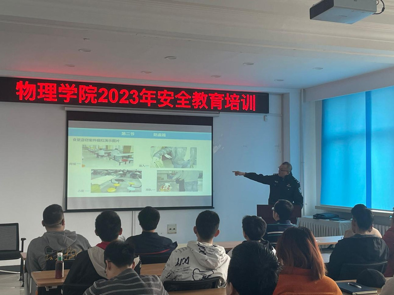 在理论学习环节,王东首先向师生代表传达了习近平总书记关于国家安全的重要论述,强调了深入贯彻落实总体国家安全观的重大意义,而后分别从电信诈骗的识别与预防、消防安全、校园安全、交通安全等方面深入浅出的结合案例进行讲解。在防骗反诈方面,他重点讲解了新型电信诈骗的特点、种类、惯用手段以及应对反电诈的知识和技巧,告诫大家遇到各种骗局做到“不理睬、不转帐、不轻信、不汇款”,增强自身安全防范意识,防止上当受骗。在消防安全方面,他详细介绍了学校消防安全的职责并结合近年来校园火灾案例介绍了火灾的危害、火灾发生后的应急处置和消防设施的使用方法等消防安全知识。在校园交通安全方面,他重点普及了相关管理制度,指导规范安全的电动车、滑板车等驾驶行为,告诫大家提高交通安全意识,减少交通事故发生。