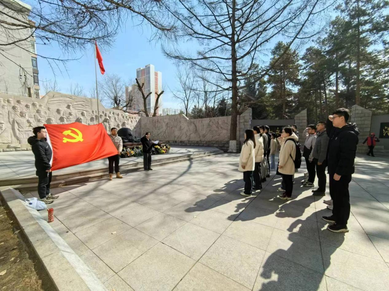 随后,学生党员们来到哈尔滨烈士陵园,在革命烈士纪念碑前进行清明祭扫活动。同学们手持黄白菊花,低头静立,向为中国的民族解放和人民革命事业英勇献身的革命先烈默哀。随后,学生党员们依次向革命烈士纪念碑敬献鲜花。接着,学生党员们在烈士纪念碑前重温入党誓词。